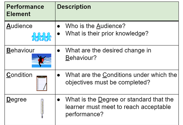 3. Mager’s A-B-C-D Model of Learning Objectives